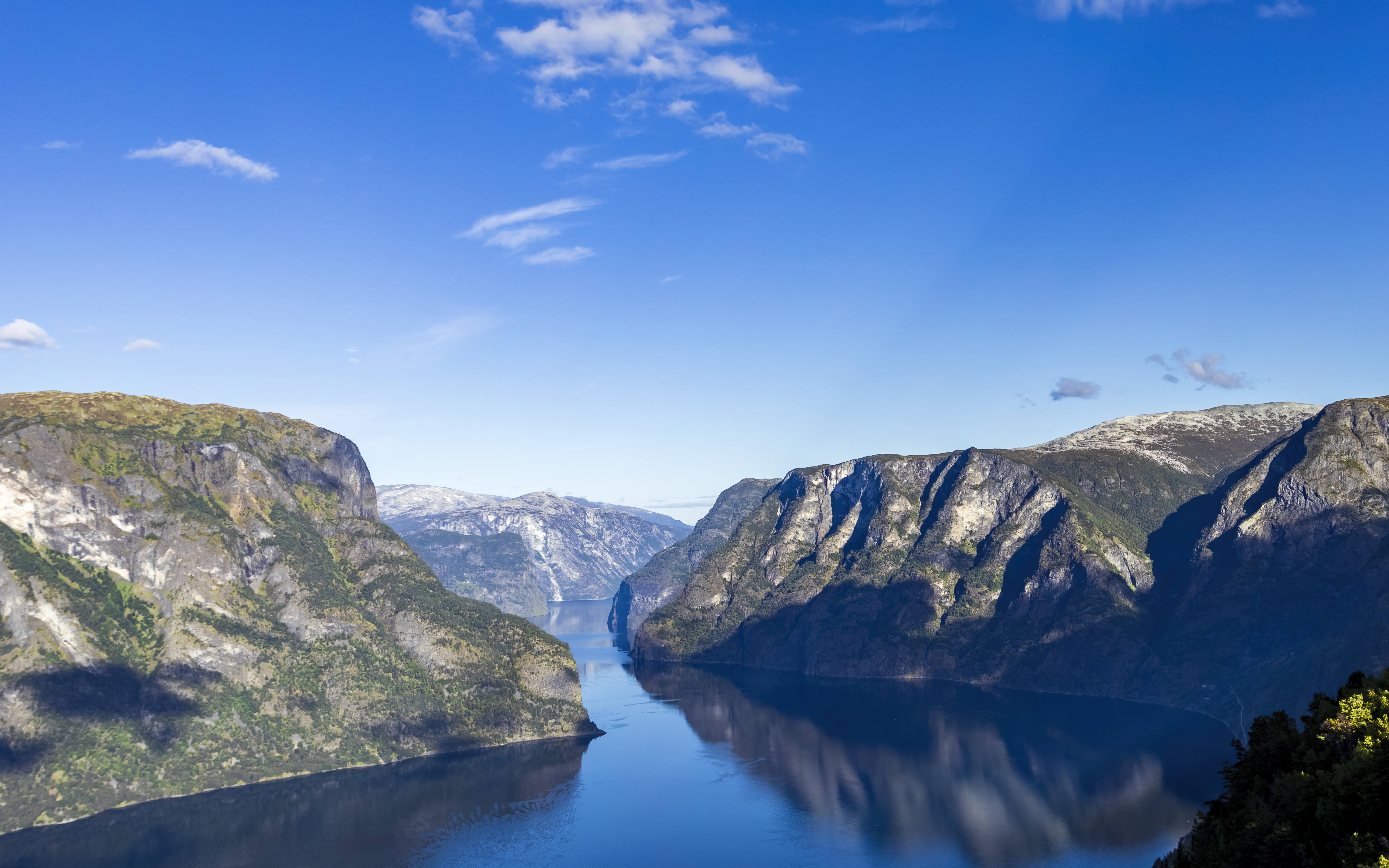 Beautiful blue skies over the fjords of Norway create a stunning view of nature. Some days it can’t get any better, with the sun shining and the fresh scent of the Norwegian air. This is one of those days, perfect for wandering the wilds of Norway.